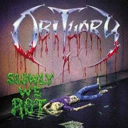 1988年,乐队与roadrunner公司签约,并于1989年推出了首张专辑,也就是死亡金属的经典名作slowly we rot(我们缓慢地腐烂)。此时乐队成员是主唱john tardy,吉他手allen west和trevor peres,鼓手donald tardy和贝司手david tucker。这张专辑的成功推出,奠定了obituary在死亡金属界的重要地位。主唱john tardy魔兽般的咆哮和压路机般缓慢碾磨行进的歌曲结构成了乐队的标签。听obituary的音乐,置身在汹涌而至的吉他和鼓击的节奏旋流中,你可以感觉到自己完全被乐器所表现的意境所包围了,而不会去在意他们的歌词在唱些什么。事实上,在这张专辑中,单凭tardy那难以辨认歌词的声音(亦是其他人所无法模彷的),就可以把这支乐队与其他的美式急速死亡先驱所区分开来。