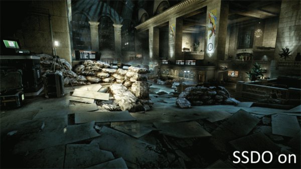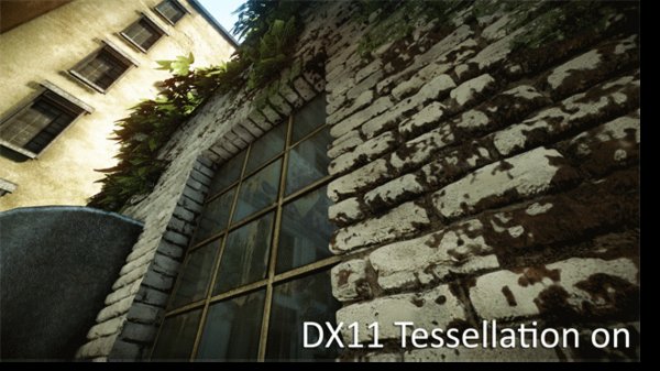 DX11升级包主要是带来了曲面细分(Tessellation)技术,内含预先细分好的几何资源,可以在DX11显卡上开启硬件曲面细分,同时还有置换贴图、视差贴图(POM)、真实阴影、可变半影、屏幕空间环境光遮蔽(SSAO)、屏幕空间方向性遮蔽(SSDO)、SSR等画质技术。