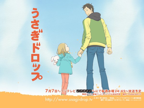「白兔糖」是宇仁田由美于05年在祥传社女性漫画月刊「Feel Young」上开始连载的,并在08年4月完结了第一部,后于同年5月展开了第二部的故事。第一部的故事是讲述外祖父因年老而逝世,他与神秘的看护妇所生的私生子・鹿贺凛却突然没人照顾,看见所有亲戚的互相推搪之下,男主角・30岁的独身男子・河地大吉却因看不过眼而二话不说地主动提出收养凛了。就这样,一位连婚也没有结的大叔,便要跳级学做别人的“爸爸”。在这过程中,大吉开始思考了如何育儿,他甚至放弃了自己的工作以便照料凛。于是,大吉和凛,大叔和萝莉便慢慢地相互了解,互相接纳对方的存在了。至于第二部则一转眼变成10年后的故事,当年6岁的小凛也变成了16岁的少女,那小凛和大吉之间会否发展出亲人以外的情感便成为了第二部的看点了。今次动画交由Production I.G制作,在看过了「好想告诉你」后,相信大家对于Production I.G处理这些带有情感及治愈的片子感到放心吧,而且Production I.G制作的TV动画一向以高水准为傲,所以「白兔糖」由他们来制作不免使人相当期待。
