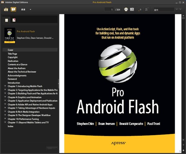 : 《Pro Android Flash》: Introducing Mobile Flash Targeting Applications for the Mobile Profile Building Flash and Flex Applications for Android Graphics and Animation Application Deployment and Publication Adobe AIR and Native Android Apps Taking Advantage of Hardware Inputs Rich Media Integration The Designer-Developer Workflow Performance Tuning Beyond Mobile: Tablets and TV