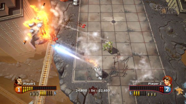 当帝国开始对自然资源破坏与统治,它将唤醒“Gatling Gear”的退休领导者“Max Brawley”阻止帝国的行动。他将与他的姪女及他所信赖的“Gatling Gear”军队单位,破坏帝国的核心、摧毁一切邪恶的源头。这是一款由EA发行的俯视角动作射击游戏,我们又有很久没看到俯视角的射击游戏了,就单从怀念的角度讲,这款游戏也有一试的空间。从游戏放出的视频来看,它确实体现了宣传语所说的东西,节奏快速,画面火爆,爽快十足,看上去是一款不可多得的俯视视角射击游戏。顺便说一句,本作的制作商是Vanguard Entertainment,它的创始人就是《杀戮地带》的开发商Guerrilla Games的创建人,各位有没有觉得对本作的品质有多了一层信赖呢?游戏现在已经在Xbox平台发售了,从现在获得的评价看,应该还是一款非常不错的游戏。