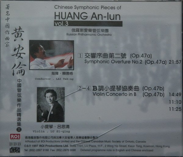 龙音唱片 -综合类-黄安伦中国管弦乐作品精选集三 Chinese Symphonic Pieces of HUANG An-lun vol.3 [龙音香港版 R