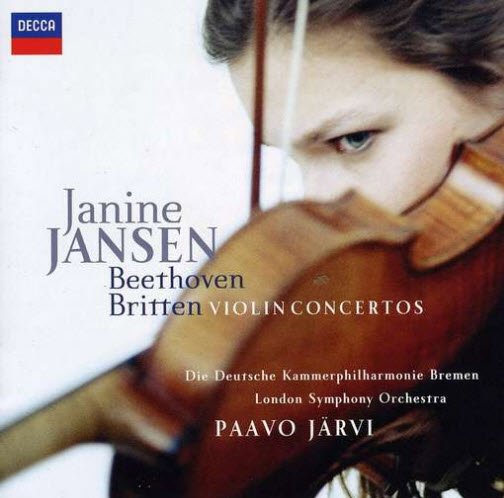 Coupling Beethoven's and Britten's violin concertos was a brilliant idea; both start with timpani tattoos, but the former is much better known, and pairing them together will expose at least some listeners to music they might not ordinarily hear. Taken on their own merits, both violinist Janine Jansen and Die Deutsche Kammerphilharmonie Bremen are superb, but bringing them together in the Beethoven concerto was a colossal mistake, for the simple reason that the Dutch violinist and the German orchestra are not playing in remotely the same style. Jansen is a modern violinist who makes tasteful use of the tools of violin playing developed in the 200 years since the concerto was written -- vibrato, glissando, and other tone-enhancing techniques -- while the Bremen musicians eschew nearly all that for the purer style of the composer's own time, albeit on modern instruments. Though individually both Jansen and the Bremen musicians are excellent players, the disjuncture between the styles of the two is unnerving, to say the least. Jansen's technique is fully formed and flashy, while her interpretation is big-boned but lyrical. Led by Paavo Järvi, the orchestra's playing is as tight, sweet, and strong as it is in its series of Beethoven's symphonies. No such problems afflict the Britten concerto since the London Symphony Orchestra is on hand, and the combination is a performance as musical and moving as it is cogent and cohesive. Decca's sound is clear, clean, and transparent, but oddly lacking in depth, warmth, and richness. (James Leonard)