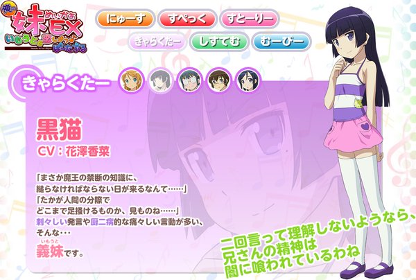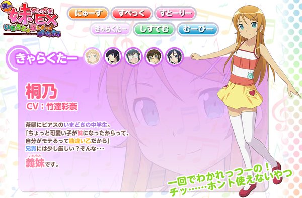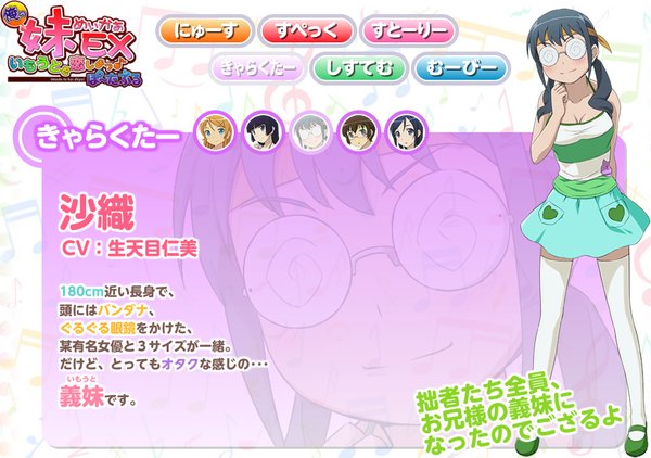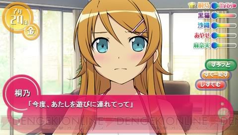 PSP版《我的妹妹不可能那么可爱》(简称俺妹)的限定版中,将会赠送原作中恶搞的游戏《我的妹妹制作EX 和妹妹恋爱吧携带版》这样一个完全架空的游戏作品,而现在这款作品居然还正式公开了游戏封面以及人物介绍,当然那人物介绍其实就是“本来作品”《我的妹妹不可能那么可爱》的角色,不过介绍中那全部都大大的字标明的“义妹”两个字还真是让人蛋疼,相信不少爱妹之人购入这个限定版的时候,其目的已经不是《俺妹》游戏本身,而是这款架空作品了。