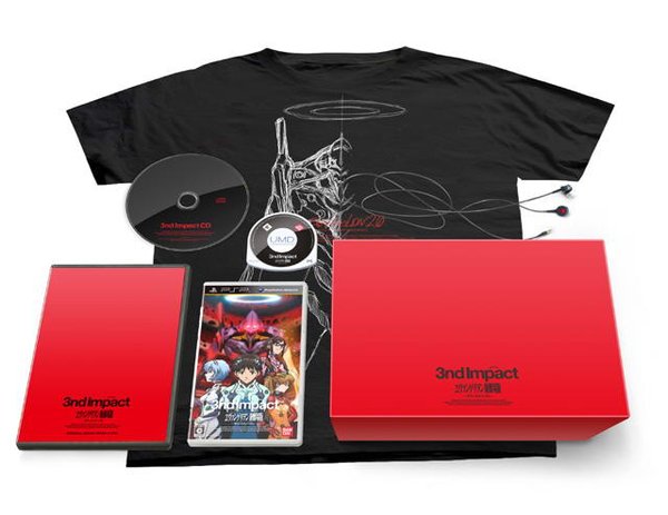 由日本NBGI公司预定于2011年9月29日在PSP掌机上发售推出,定价普通版6,280日元(含税价),内含游戏片与原声光盘CD、特制收纳盒等特典一起同捆,贩卖期限到2011年12月为止的期间限定生产版Soundtrack Edition版8,380日元(含税价);内含原声光盘CD与游戏片,还有特制耳机、特制T恤跟特制收纳盒等特典一起同捆的初回限定生产版特制版11,530日元(含税价),并将推出PSP特制自定义主题下载码作为游戏初回封入特典的这款新作:《新世纪福音战士新剧场版:第三次冲击》(Evangelion Shin Gekijoban: 3nd Impact),而关于本作的游戏类型,似乎是音乐与影像的融合,而且还准备了6种不同的游戏方式。本作的制作人为广野启、监督为饭田和敏、音乐为山冈晃。游戏中山冈晃再谱了原剧场版中的音乐,总共将会收纳30首曲子以上。