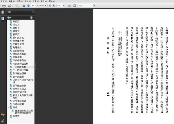 : 吴广霈序文 吴学廉序文 宋赓平原序 赵藩序文 论剑法源流 内外功用基础 忌害说要 学砍母子剑法 七剑底母法图解 十三剑法图解 ………………