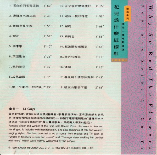 李谷一 -李谷一独唱歌曲选-花儿为什么这样红 Why So Red The Flowers [百利唱片 BCD-90032][FLAC]