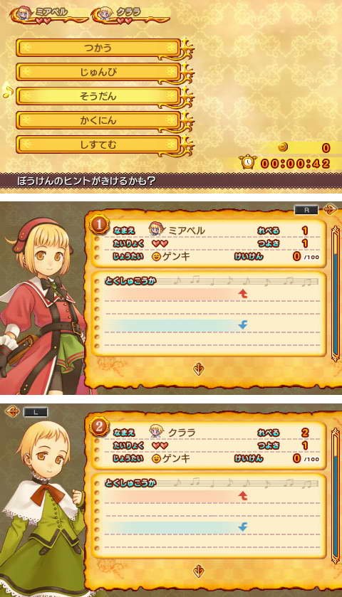 接下来就名正言顺了,为夺回被魔王夺走的声音梅阿贝鲁带着国仇家恨出发了。而一同出发的还有丽丽学生时代的友人伊古拉次,以及他的人偶库勒佛以及另一个姐姐库拉拉(她们家是三姐妹),一共四人组成了拯救世界的───祈歌团小队!就这样梅阿贝鲁她们与同伴们一起踏上讨伐魔王的旅程……