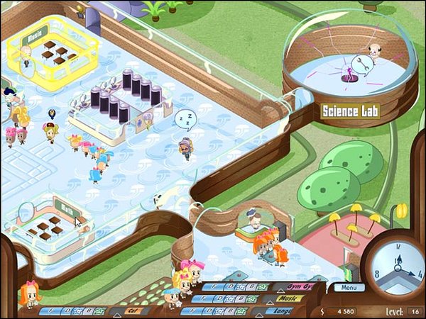 画 面:卡通感十足的游戏画面色彩运用的清新亮丽,精美的图形具有生动展示,倾斜的操作界面看起来更具立体感,使游戏画风独树一帜。Q版的小朋友或老师造型虽然简洁,但却表现的幽默可爱。