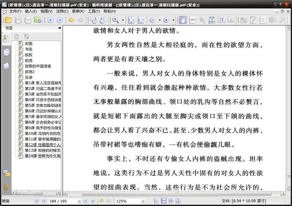: 致我的中国读者 前言 第1课 男人注定是被甩的 第2课 只追二兔者不得一兔 第3课 坐而思不如起而行 第4课 巧言令色倾诉爱 第5课 勿焦勿躁坦诚相对 第6课 巧试妙探确认对方 第7课 垂手而得的女人轻佻? 第8课 交合前务必牢记的心得 第9课 施予的性与接受的性 第10课 花哨内衣的危险性 第11课 替牢骚满腹的男人们进一言 第12课 性爱是两个人的共同作业 第13课 锐挫的时候怎久办