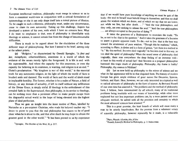 This book is no attempt to give disparate informations about Chinese thought. It aims at presuming, in a sketchy way, a systematic interpretation of those ideals that have been effective in the shaping of Chinese culture.