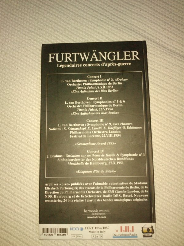 唱片信息:TAHRA公司出的4cd 套装,唱片号FURT1054/1057. 自有唱片制作分轨WAV文件,码率1411kbps。