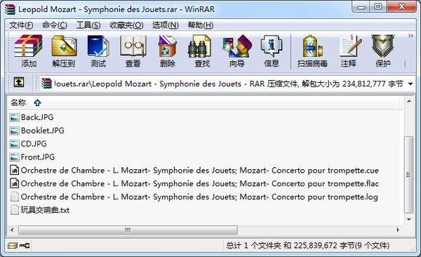 发布一张Leopold Mozart的玩具交响曲,收藏已久,但网上一直没有相关资源,于是自己抓轨传上来分享给大家。 Leopold Mozart是乐圣Wolfgang Amadeus Mozart的父亲,大家可能在《莫扎特传》这部经典的电影中看到过这一银幕形象。他的玩具交响曲非常有名,并在很长一段时间被认为是海顿所做,后来才被确定属于Leopold的作品。这张CD还收有W.A. Mozart的一个音乐小品“a musical joke”。整张CD都非常好听。 从小就开始听这张专辑,也算是我古典音乐的启蒙音乐了,一直极其喜爱,特此与大家分享。 FLAC整轨用EAC抓轨,包含完整的CUE文件和LOG文件,并附带专辑封面、封底、小册子、光盘的照片。独此一份。
