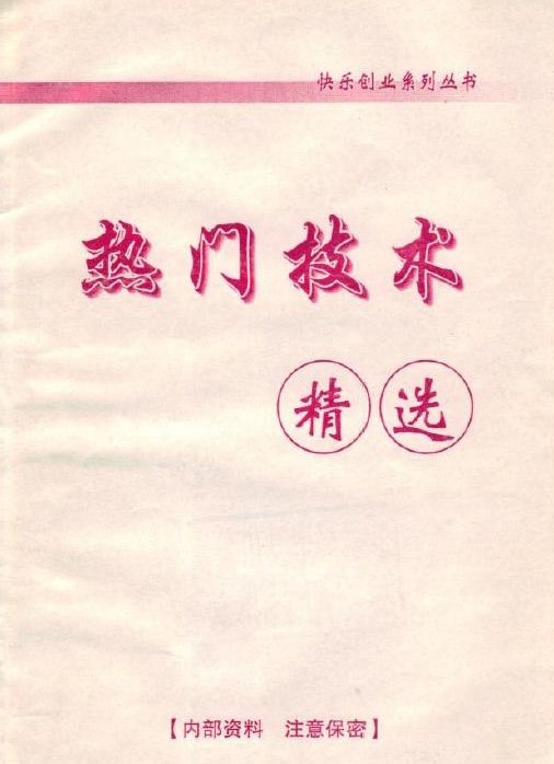 : 1、金牌创业项目——高档立体铜版画制作 2、千元投资“隐茶杯” 日赚千元 3、水晶工艺品现场制作技术 4、魔水、魔笔、魔习板的加工技术 5、合成鸭血、猪血、羊血、牛血两年半赚了十六万 …………………………………………………………