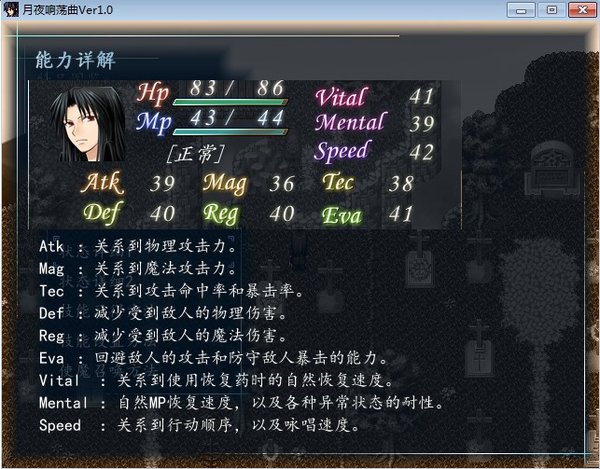《月夜に响くノクターン.Rebirth》汉化版1.0 月夜响荡曲(汉化版)VER 1.0 由XRKJMZ独自汉化,本人只是出于兴趣,为了广大玩家能玩得开心才汉化的。。请勿用于交易! 汉化内容: 1,所有剧情,物品,技能等全部汉化,汉化率为100%。(物品第2解释跟阵型方面是用脚本汉化的,因为数据库找不到文本。。汗斯,花了两星期才学会用脚本改data。) 2,调高物品爆率。(你懂的。) 3,增加商店销售物品及隐藏商店的出现。(隐藏商店在十字架山丘墓地。开启条件嘛,呵呵自己去看看就知道。) 4,强化炼金系统。(原作里有些炼出来的也是垃圾。。嘿嘿,这个版可不是。) 5,增加地图上闪亮小物品。(眼睛争大大哦~) 6,某些道具能力有所改变。(增加高级属性衣服,还有防异常饰品等) 7,取消打小怪爆武器和衣服。(原作打小怪有机率爆极品……狂汗>_8,特殊武器增加攻击效果,并增加专用图标。(特殊武器带效果后,主角居然左手没有动作。。这个求高手解决。好武器没攻击效果,感觉不是很完美……) 9,敌人重新分属性,所以脸图及数据有所改变。(原作暗属性召唤曾太多鸟。。) 10,所有技能满级后冷却时间减少。(人物跟怪物都有下降,不然等大半天,都快挂了还不能出招。) 原作隐藏BOSS:开启条件 在clever Level 40条件下,打败卡奥斯后取得“天启”,然后重新读取游戏,再次来到卡奥斯小层左边房间的椅子左边,可以开启隐藏道路,进入游戏制作人员的工作室。战胜隐藏BOSS,可以继承所有道具重新玩二周目。