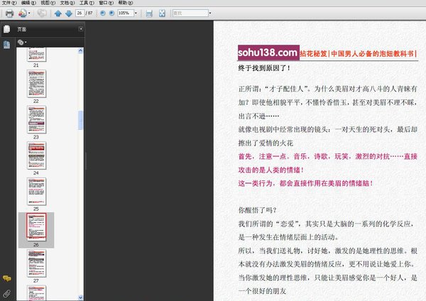 很多人会抱怨找不到漂亮女孩子做女朋友,抱怨身高、长相、没钱……或者一些其他的因素,其实“恋爱”、“爱情”并不是不可复制、难以言传的神秘技术,只不过是在大脑中发生了一系列化学反应……只要同那些“泡妞高手”使用同样的方法、在同样的环境下,自然也能激发女孩子大脑中分泌同样的化学反应、触发同样的生理机制。