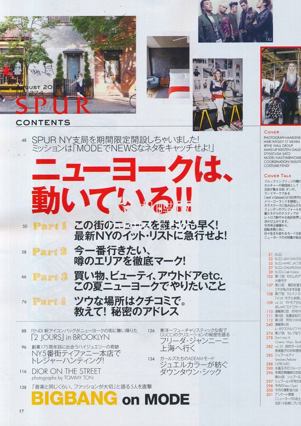 带动升华流行、崇尚艺术的时尚魅力美学的流行杂志「SPUR」。在每月定期出刊,精心编辑出各式单元主题:特集企划、时下单品介绍、名牌新款发行特报、人气搭配研究、名人推荐款式,专业取材报导:世界时尚报导、艺术创作介绍...等。并有精采连载企划:不定期连载、摄影、小说、世界风俗民情、旅游记事、小传、星象占卜等等。