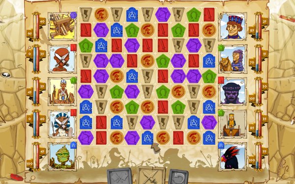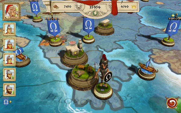 Tiny Token Empires是一款集回合制策略、经典三消于一体的益智类游戏,故事背景设定于中世纪战争时代,典型的古帝国画风,兼具古代罗马、希腊、埃及、波斯、迦太基的神秘风格,玩家在游戏中所要做的就是发展自己的城市与军队,吞并版图,把势力扩大到世界各地。游戏地图庞大,拥有75个独立区域,战斗单位多样,包含了步兵、弓箭手、船、传教士等,而游戏除了正常的战斗以外,还增加了对区域的探索玩法,无论是战斗还是探索都利用经典的三消形式来完成,可谓是该游戏的一大特色,也是游戏中最主要的玩法,同时战斗与探索的三消玩法也并不完全相同,有其独特的规则,使得传统的三消在该游戏中的表现更加的有趣多样。