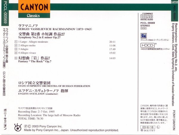 斯维特兰诺夫 Evgeny Svetlanov 苏联国家交响乐团 USSR State Symphony Orchestra -拉赫玛尼诺夫第二交响曲、岩石