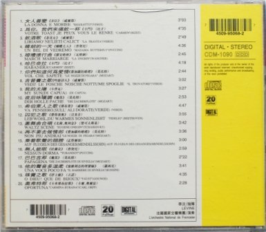 2000年的时候,我在南京读书。那时候南京的电台里面有档介绍古典音乐的节目。这张唱片就是听了介绍去买了。 这是个人最喜欢的一张CD之一。内容为歌剧的精彩片段。特别是里面的第十首《夜后咏叹调》(选自莫扎特的《魔笛》),听得特别荡气回肠。