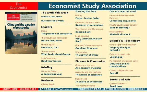 经济学人 The Economist 2012年英文豪华版 更新至2月4日刊[PDF]