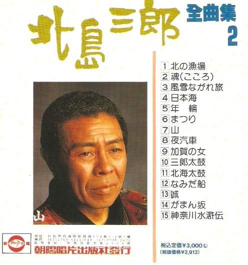 北岛三郎(Kitajima Saburo) 原名大野穰,1936年生于日本北海道的一个小渔村,幼年家境贫寒,父亲靠打渔为生。北岛三郎从小就喜欢唱歌,高中毕业后只身来到东京寻求歌唱梦想。在歌厅驻唱期间他得到作曲家船村彻的赏识,收为弟子。经过努力,终于在1962年以一曲《なみだ船》(泪之船)大获成功,并获得该年度日本唱片大赏新人赏。此后的《兄弟仁义》、《函馆の女》、《与作》、《风雪ながれ旅》等歌曲都受到普遍欢迎,成为不朽名曲。