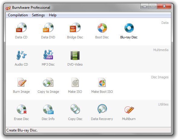 The program enables users to create data discs (CD, DVD, Blu-Ray, bootable CD and DVD discs) and discs with multimedia content (Audio CD, MP3 discs and DVD video discs). Apart from this, BurnAware Pro will help you create and burn ISO images (ISO and CUE/BIN image files supported), erase rewritable discs, burn multisession discs and even extract specific files from disc sessions and tracks from Audio CDs. A simple and intuitive interface of the program will make even novices feel comfortable with the program features.