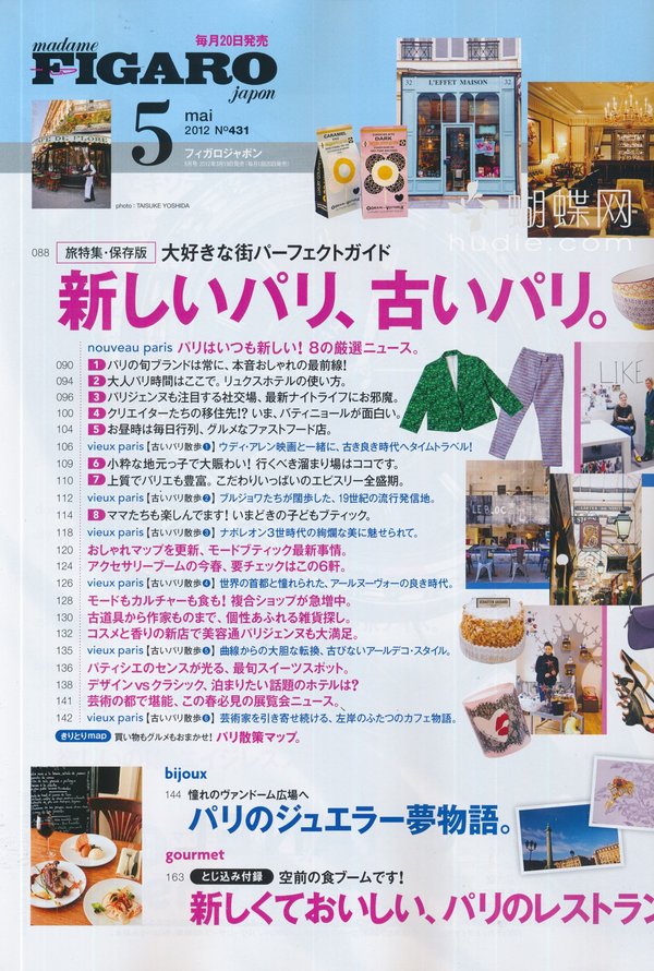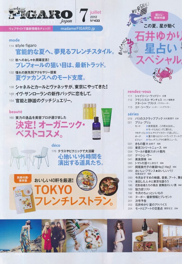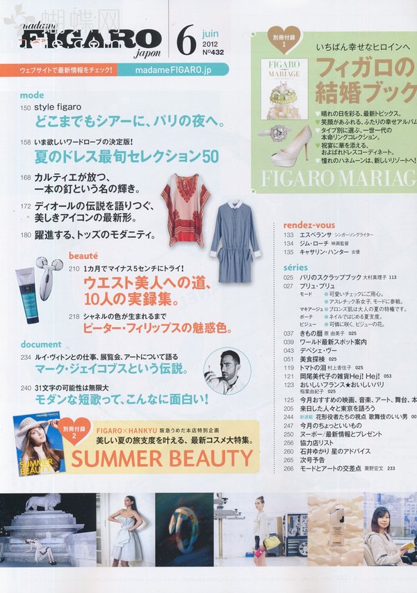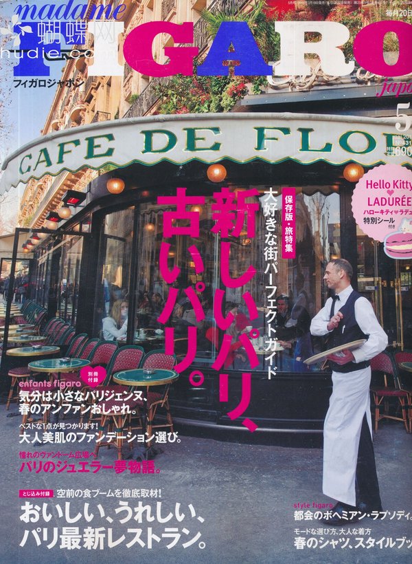《FIGARO》,日本经典畅销的时尚女性杂志。《FIGARO》是法国新闻报Le Figaro所创办的女性杂志“Madame Figaro“的日文版本。自从1995新组以来,Figaro Japon已经成为盛誉的高品质时尚杂志。读者通常是25-30多岁的时尚睿智女性,他们都对Figaro 的时装,美容,文化和旅游资讯抱有极大的兴趣。