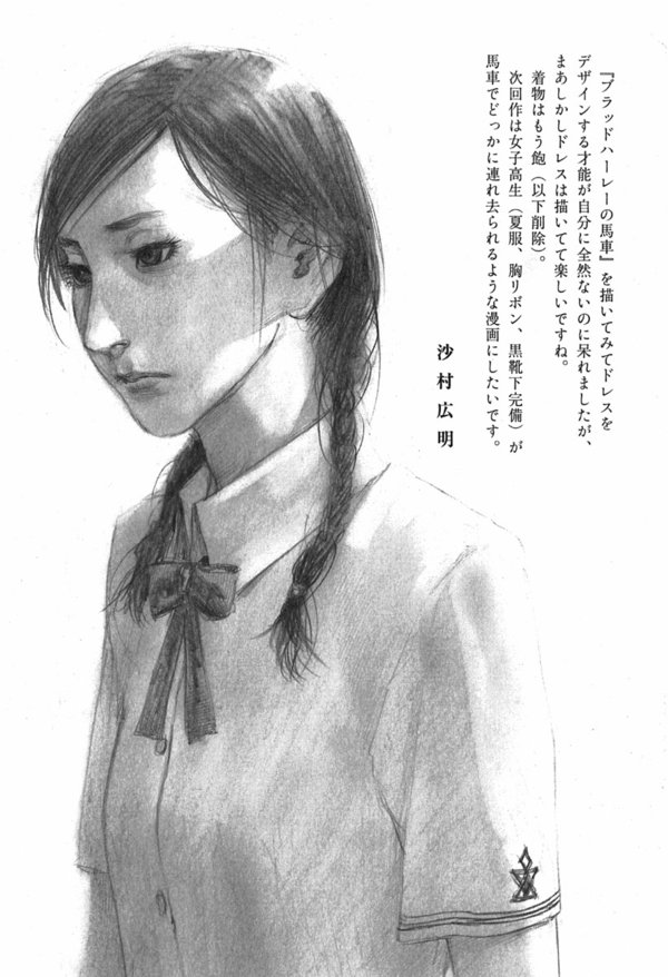 【作 者】沙村广明,日本多摩美术大学毕业,师从于漫画家冬目景。代表作为1994年开始在月刊《AFTERMOON》上连载的《无限之住人》。画风属于素描式的写实派,大量使用线条和淡墨来代替网点,凝重的色调、电影感极强的动态画面与分镜将一个充斥杀戮的残酷世界表现得淋漓尽致。该作的各卷发行量都超过20万册,受到读者和业界的一致好评。