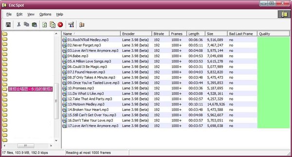 压缩比率:CBR192Kbps