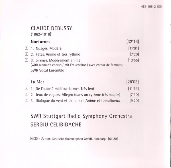 Debussy: Nocturnes (Stuttgart, Funkstudio 15.11.1980), La Mer (Stuttgart, Liederhalle 11.02.1977)