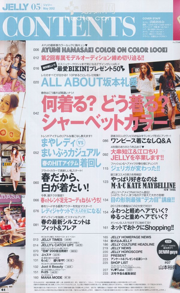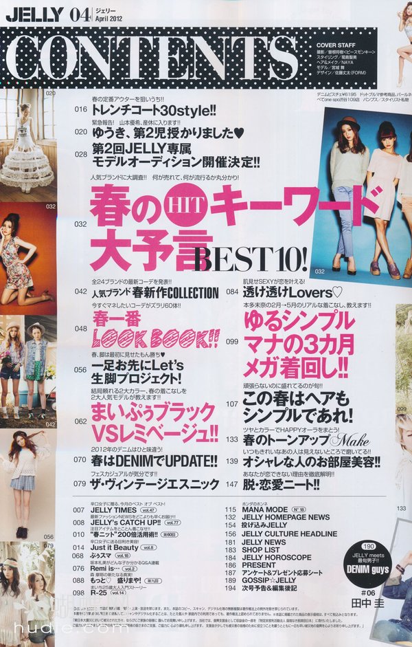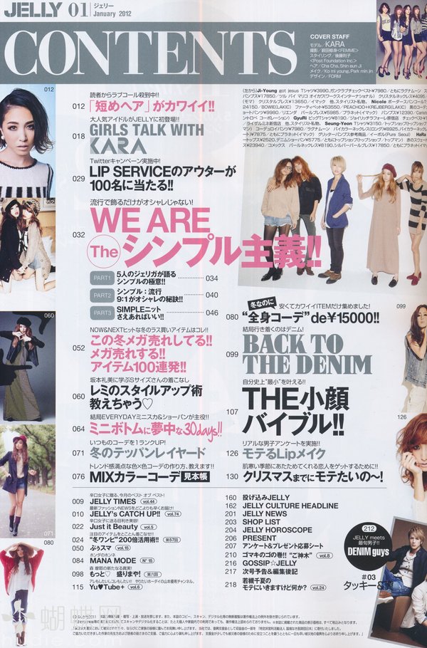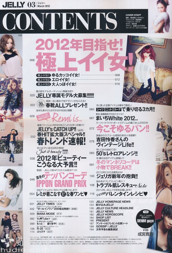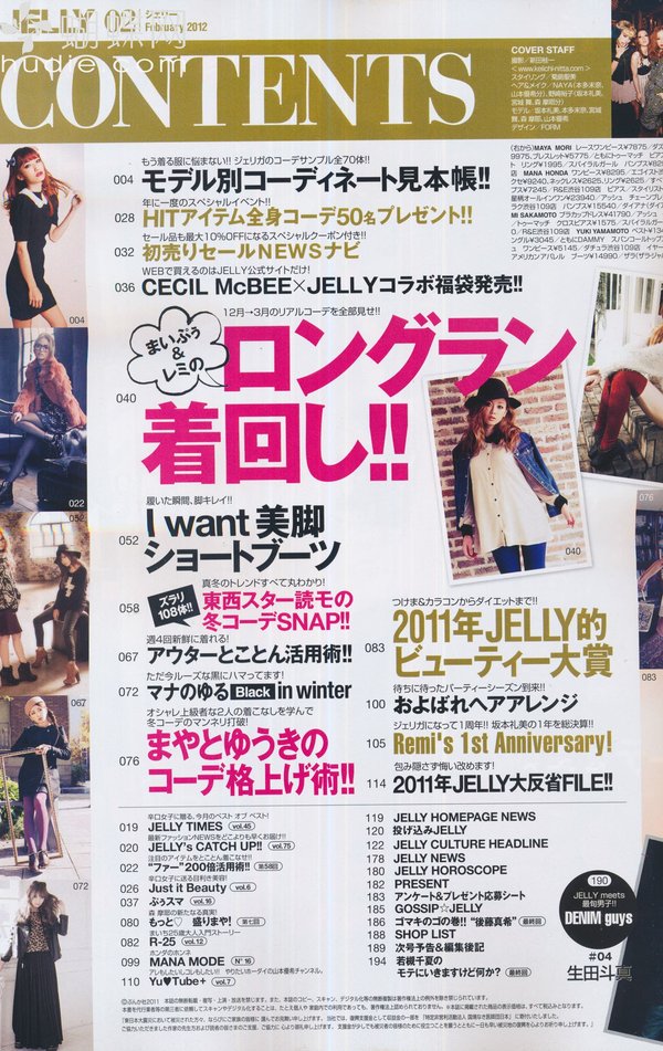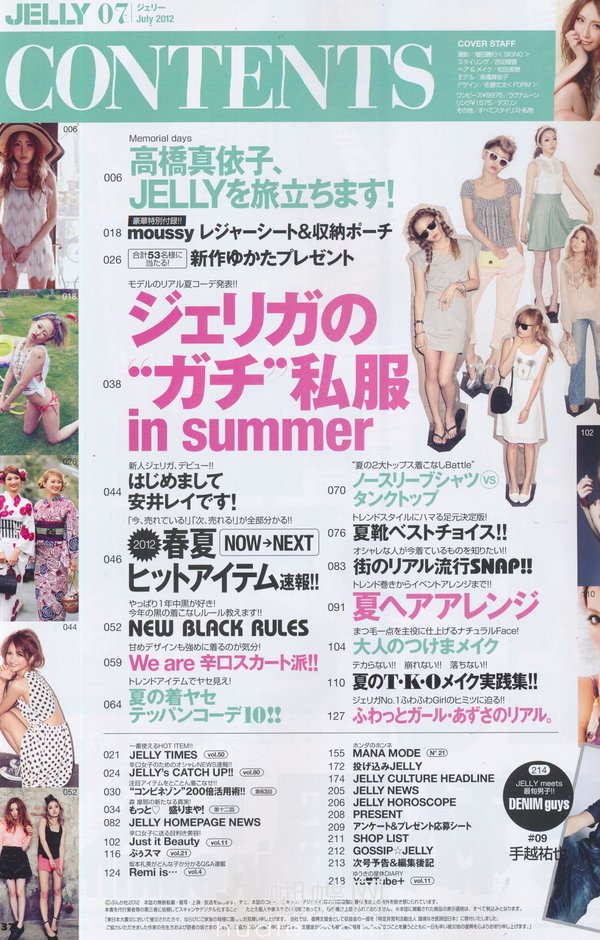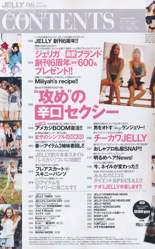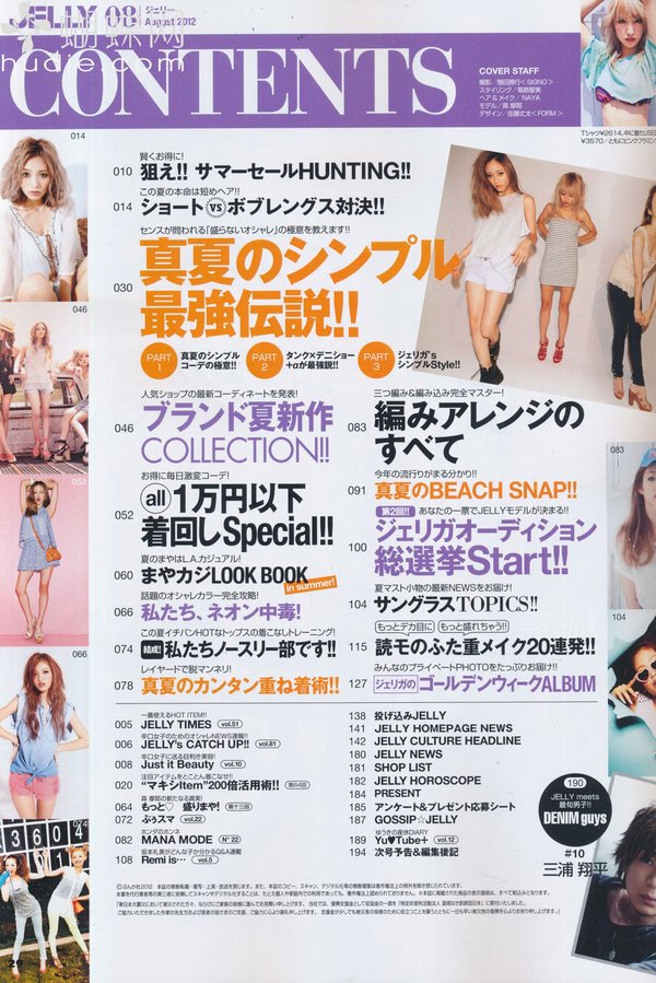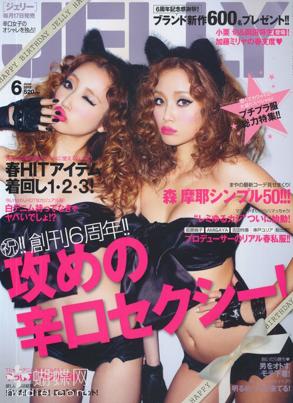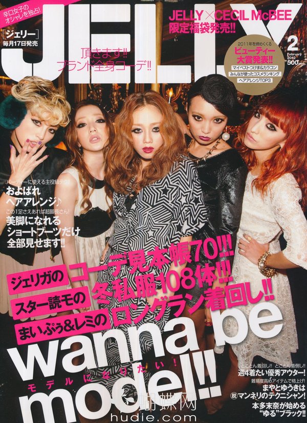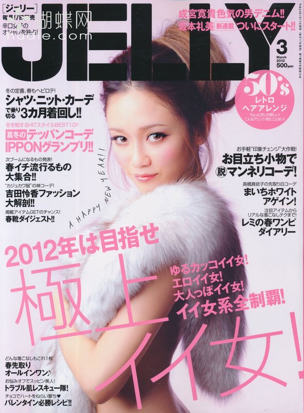 《JELLY》日本甜美性感类服饰杂志,在亚洲大受欢迎,受到无数时尚MM追捧。JELLY追寻的呛辣女孩休闲穿衣风 就是要妳穿出难以抗拒的致命吸引力!以基本的休闲风为主轴,时而性感媚惑、又带点强悍与韧性,并且将时下潮流元素导入MIX,我时尚,我休闲,所以我性感!这就是《JELLY》杂志的真谛所在。