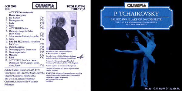 版本: Fedoseyev, USSR, Olympaia 四幕芭蕾舞剧