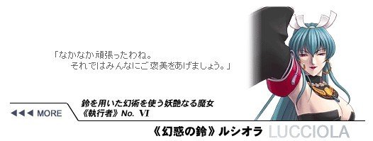 以前曾与雪拉扎德在同一个马戏团工作,被雪拉以姐姐的身份看待。马戏团解散后不知去向,之后在《SC》的事件中以噬身之蛇“执行者”身份登场。《SC》中枢塔一战后告知雪拉一切真相,之后于中枢塔上跳下,生死不明(中枢塔部分剧情的产生视玩家当时是否携带雪拉扎德而定)。