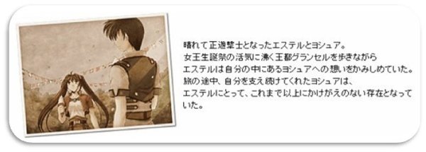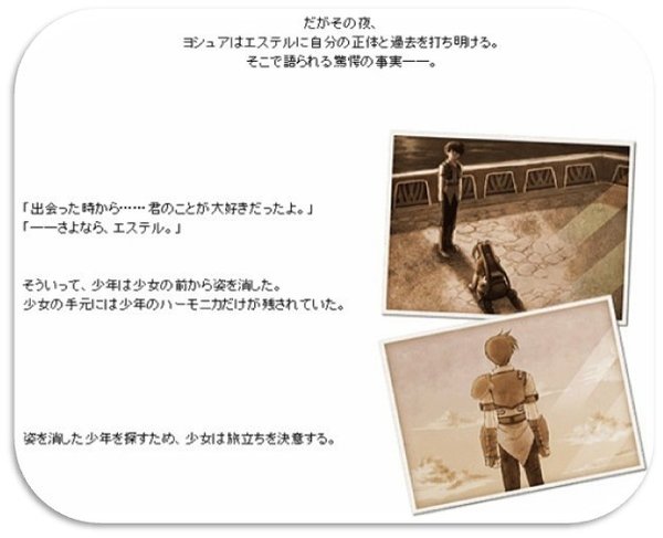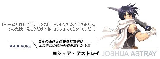 《SC》剧情中段,艾丝蒂尔与约修亚再度相见且他誓言要保护艾丝蒂尔,两人一起为解决利贝尔王国的骚动而努力。