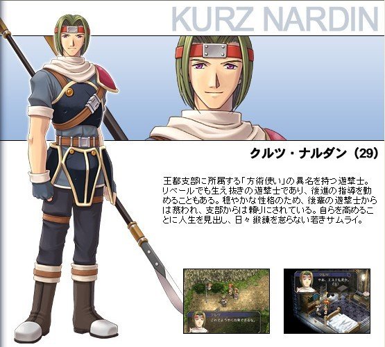 29岁。擅长使用枪及方术且被称为利贝尔NO.2的游击士,有“方术使”的称号,是利贝尔游击士协会最早的成员之一。常积极照顾许多游击士晚辈,《SC》时升格为A级。