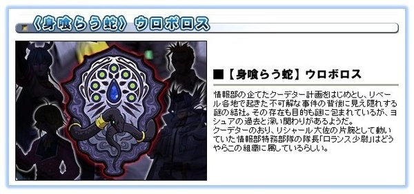 从许多的事件中研判自国的宰相——吉利亚斯·奥斯本与噬身之蛇有某种程度的连系,以“彼のやり方が美しくないから”做为对其宣战之理由。在《the 3rd》中可得知他现在正积极于政治界和社交圈等各种各样的地方露面,以稳固自己的立足点及增加与宰相对抗的力量。