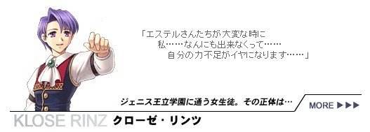 《the 3rd》开始成为玩家可操控的角色之一,7个结晶孔连成一条无分岔的直路且完全没有属性限制,显现其强大的导力法术天份。