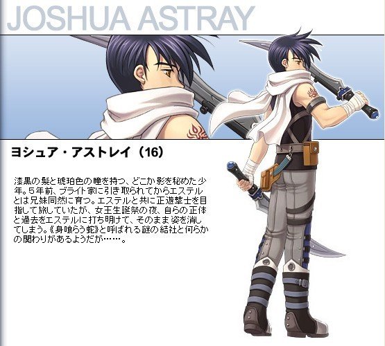 根据约修亚的记忆,他在11岁承接了暗杀卡西乌斯的任务,但被卡西乌斯击倒并且带回布莱特家照顾,此后再也没有与噬身之蛇接触,就那样成为养子在布莱特家待了五年左右。但在《FC》政变事件结束并成为正游击士之后,被怀斯曼教授解除了暗示并告知他本来的任务内容——原来约修亚在这几年间无意识的提供卡西乌斯的情报给结社(怀斯曼的暗示)。约修亚痛苦不已。在与艾丝蒂尔说了自己的过去之后,把口琴托付给艾丝蒂尔并且离开了她,决定自己去了结与噬身之蛇的恩怨。