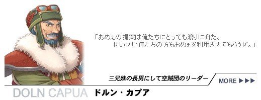 30岁。空贼团“卡普亚三兄妹”的长兄,在空贼团担任首领的角色。擅长使用导力炮。