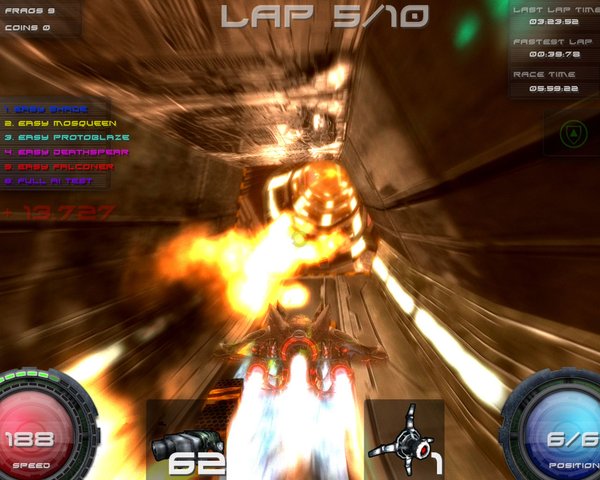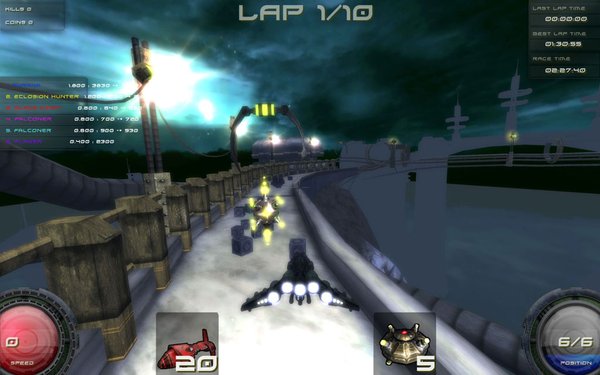 烽火飞车(Pyroblazer)是由Eipix Entertainment公司开发的幻想派新作。在《烽火飞车》中,玩家将有机会驾驶名为“烽火飞车(Blazer)”的反重力赛车,在名为“New Apeiron”的异度空间中飞驰。为了获得让人神往的荣誉,玩家们将在Gnosis的“废墟之谷”、Haedra破败不堪的城市废墟以及人迹罕至的“Underdome of Evelads”展开一轮轮 殊死拼杀。随着游戏流程的不断深入,玩家的坐骑也将获得行驶速度、操纵性、攻击火力等属性的提升。此外,你还可以在较量中捡拾对手掉落的武器和弹药来升级自己的战车,以强化攻击的能力。《烽火飞车》除了拥有包含“快速竞赛(Quick Race)”和“竞标赛(Championship)”的单人游戏,还为喜爱网络对战的朋友提供了最多 支持六名玩家同场竞技的本地及互联网多人对战内容。基于Eipix的“Ultra Engine”和前奥加(Ageia)公司PhysX中间件,《烽火飞车》将为喜爱竞速和科幻类型游戏的玩家带来精彩非凡的反重力竞速体验。