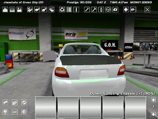 配置 MINIMUM SYSTEM REQUIREMENTS Windows 98/ME/2000/XP PII 500Mhz 128 MB RAM 500 MB Free HD Space Required 4x CD ROM Drive DirectX 9 compatible video card with 32MB video memory DirectX compatible sound card 介绍  简介:游戏主要包含2个模式,一个是职业生涯模式,另外一个是自由驾驶模式。在职业生涯模式中,你需要首先创建自己的车手,然后用仅有的$25000买一辆比较“破”的车去一点一点赢钱。如果比赛胜利,那么你可以用得到的奖金买更好的零件,甚至直接买一辆更好的车,不断的升级自己车辆的性能,一起来疯狂地改造起来吧! 截图