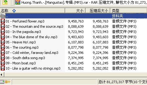 注:另外附加的一个压缩包中含有Mangustao、Moon and Wind和Dragonfly三张香清的早期专辑。这里的Mangustao专辑是从该压缩包单独提出来的,方便之前下过其他专辑的朋友。下载时千万注意!