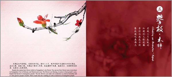 木棉花也叫英雄花,是广州的市花。每年二三月,城中到处可见满树火红的木棉花,花色之艳,欲烧人眼。木棉花于广州人有恩,落花晒干可成药,祛湿利水,木棉絮制成枕头,是广州人的传家宝。