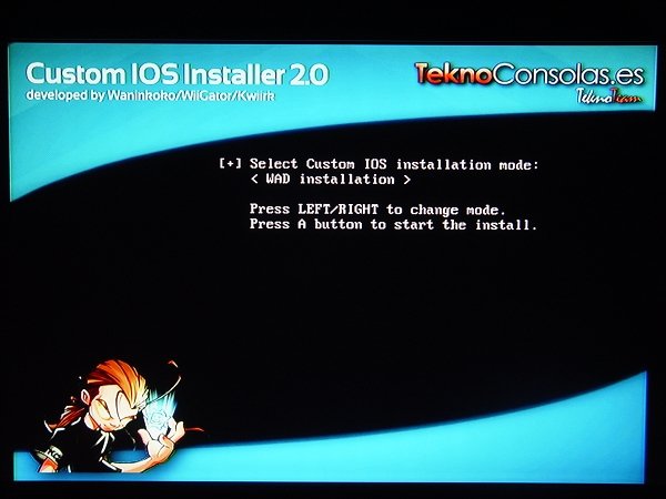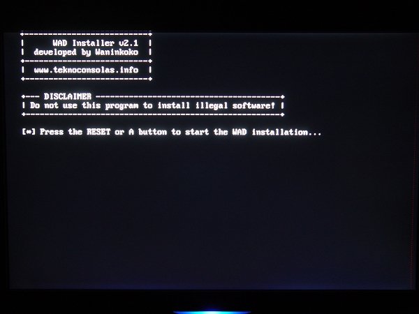 此时要选择WAD installation,即为本地安装。手柄十字键左右可切换安装方法。按A键继续。
