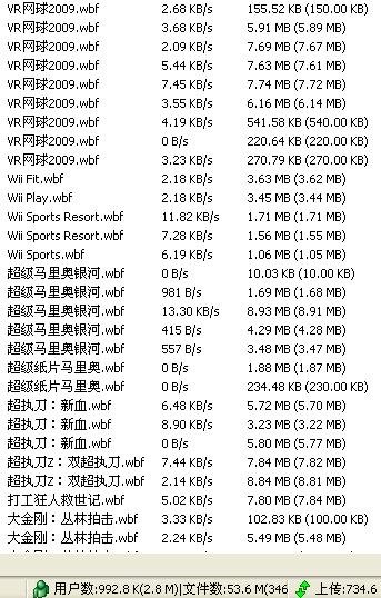 4、使用10M光纤做源,7*24小时不间断做源,但是不排除偶尔服务器需要重启,我会第一时间恢复供源。另外针对连不上源的机友,做共享光靠我这一个源是远远不够的,任何P2P软件都会根据带宽的大小而限制连接数,当我这个源的连接数达到最大以后,后来的下载者连不上源也就不奇怪了。另外,反映下载速度慢的机友,如果你并没有使用属于封禁范畴的吸血骡,并且也处于高ID状态,那请稍安勿燥,因为电骡是有下载排队机制的,我只能保证一是永不断源,二是保持上传速度最大化,至于电骡分给你多少下载流量,那是他的排队机制自动分配的,我无法控制。此外凡是新发布的资源一开始下载都会比较慢,因为初期只有我一个完整源,大家虽然也可以互相补充进度,但是绝大部份的数据段都还是需要在我这里获得,我的带宽再大但也是有上限的,不可能无限制提供连接数出来,并且在共享新资源的同时,老的资源同样也在共享,从我下面贴出来的上传流图片就可以看出来,虽然上传流量总数很高,但是分配到每个具体的资源上就只有几K而已,上传带宽是所有资源平分的,我顶多只能控制具体资源的上传优先级(这玩意儿好像没什么效果),并不能控制具体资源的上传流量,甚至像某些玩友想像的那样,可以单独为某个IP开大上传流量。。。。。所以考虑以上所述,大家平静一点的下载吧,并且请尽量留源,在此我感谢大家了。 目前常驻free.usenet.nl ed2k://|server|87.230.83.44|4661|/ 备用地址free.usenet.nl2 ed2k://|server|80.237.156.72|4661|/ 截止2010.03.28,已累积上传11TB。