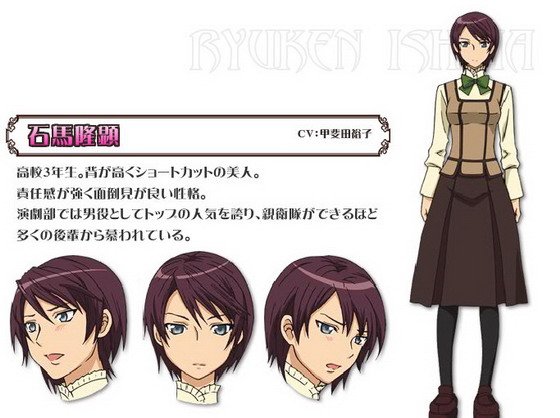 高中三年级学生。是一个头发短,身材高挑的美女。极富责任感,是个很会关心人的好姑娘。因在演剧部占据男一号而人气飙升。身后有成排的后辈们仰慕追逐着她。