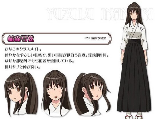 加奈子的同班同学,一头飘逸的长发,恰似她平和温柔的性格,所属弓道部。不知道为什么,常常在弓道部以外的场合也部服不离身。和桃井幸是好朋友。