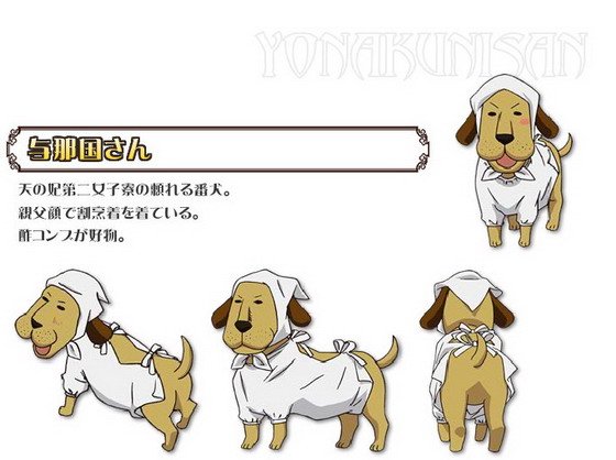 天妃第二女子宿舍的看门犬。一副大爷脸,配着一身厨师服。喜欢吃酸海带。