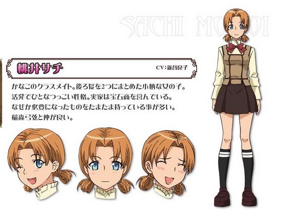 加奈子的同班同学。是个扎着两条小辫子的小可爱。性格活跃,容易接近。家里是做宝石生意的。不知为什么,她时长碰上些迫于无奈的事情。和道森弓弦是好朋友。